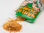 原材料:フライドガーリック(乾燥にんにく、食用こめ油)(国内製造又は中国製造)、いりごま、粉糖(グラニュー糖、コーンスターチ)、食用調合油(食用大豆油、食用なたね油)、食塩、粉末醤油/調味料(アミノ酸等)、酸化防止剤(V.E)、(一部に小麦・ごま・大豆を含む)
